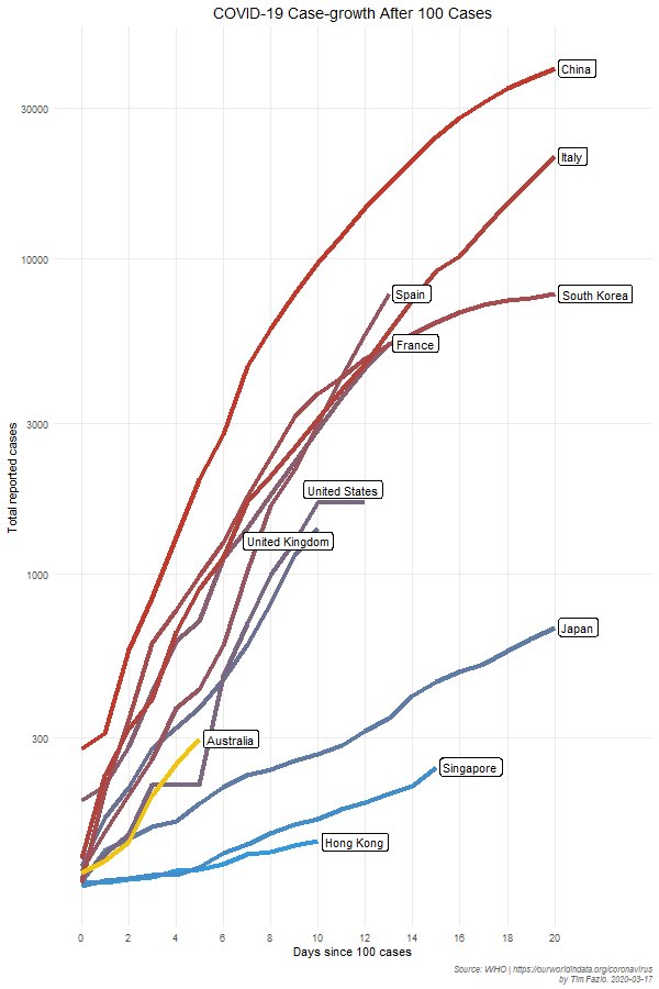 Cases (and deaths) in Europe and the US are spiralling out of control but in Singapore, Japan and Hong Kong – using more of a Chinese approach – the curve is considerably flattening over time.